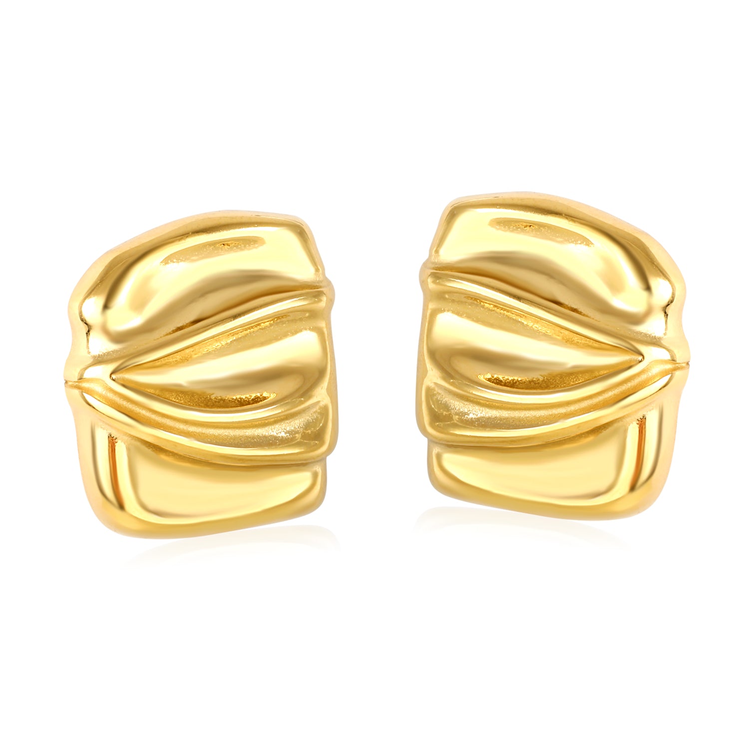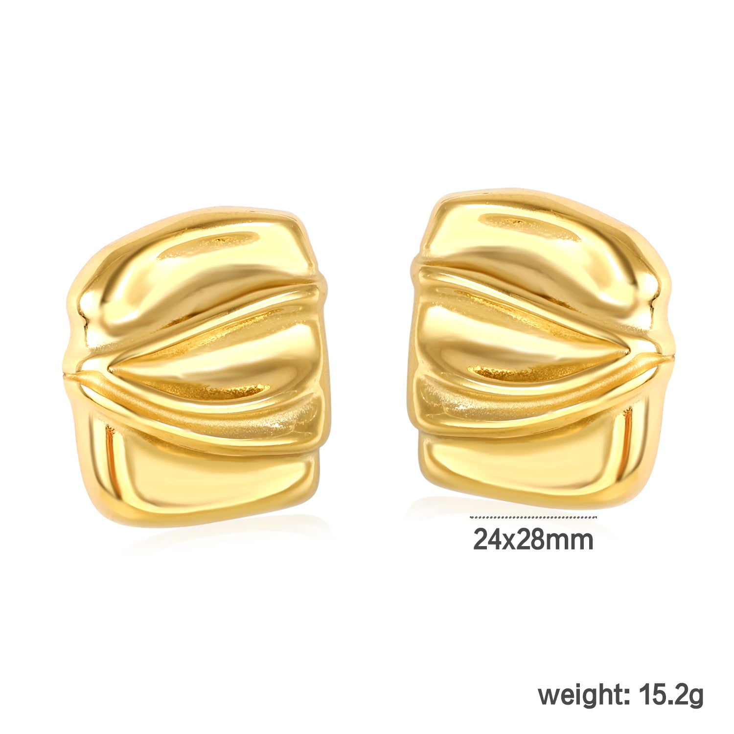 Add an edgy touch to your collection with these Wholesale 18K Gold Plated Crushed Metal Earrings. Featuring a textured surface inspired by industrial art, they combine bold design with modern elegance. Durable and lightweight, these earrings offer both style and comfort, perfect for expressing a unique, contemporary look.