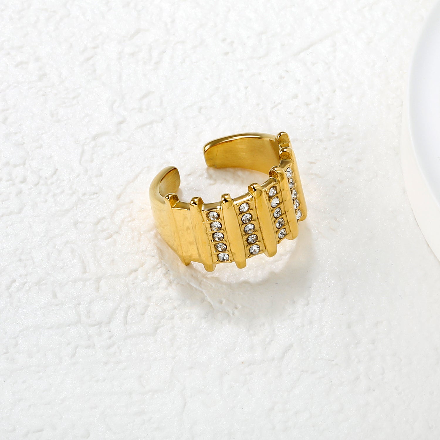This 18K gold-plated multi-layer ring features an open band design accented with sparkling diamonds and rich emeralds. Its festive and artistic style adds a luxurious touch to any occasion, offering both elegance and sophistication. Lightweight and eye-catching, it’s perfect for celebrating special moments with timeless beauty.