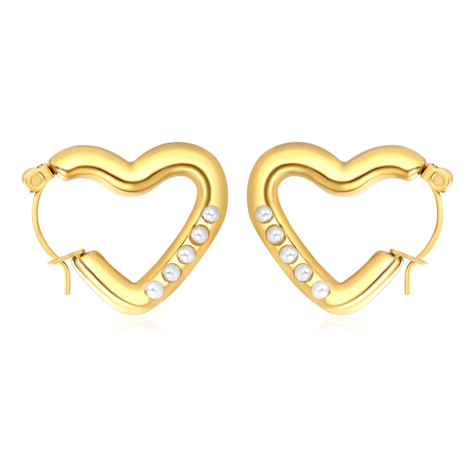 These wholesale 18K gold plated openwork heart earrings feature delicate diamond accents, adding a sparkling touch perfect for festival celebrations. Their intricate design combines elegance with a light, airy feel, making them a charming accessory for special occasions or everyday wear. Comfortable and stylish, they bring a subtle luxury to your look.