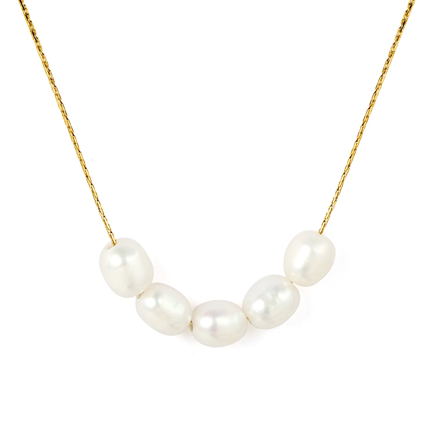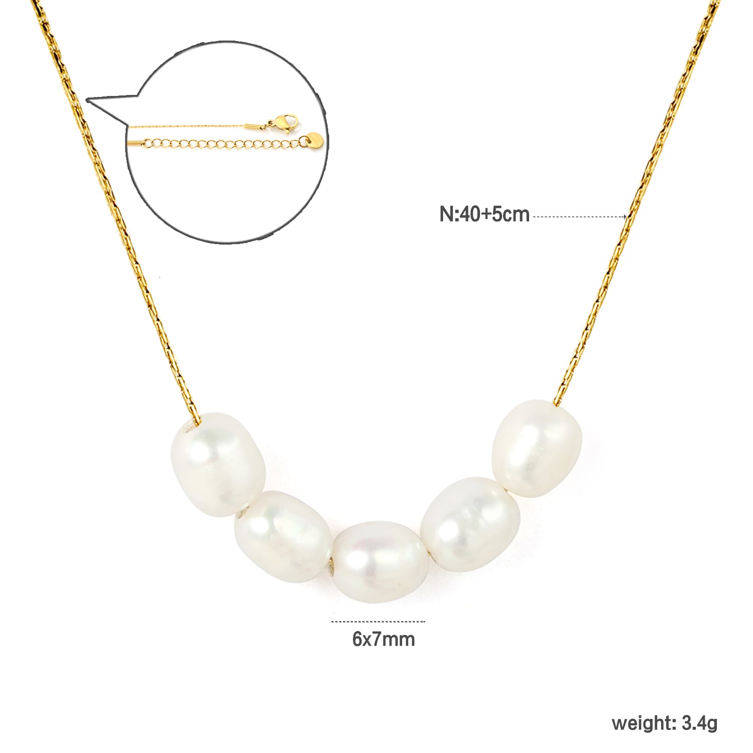 This Wholesale 18K Gold Plated Pearl Strand Necklace showcases irregular white pearls with natural luster, creating a light luxury look. Its unique design emphasizes organic beauty and timeless elegance, while the gold plating ensures lasting shine. An ideal choice for retailers offering classic yet distinctive jewelry that complements any outfit with subtle sophistication.