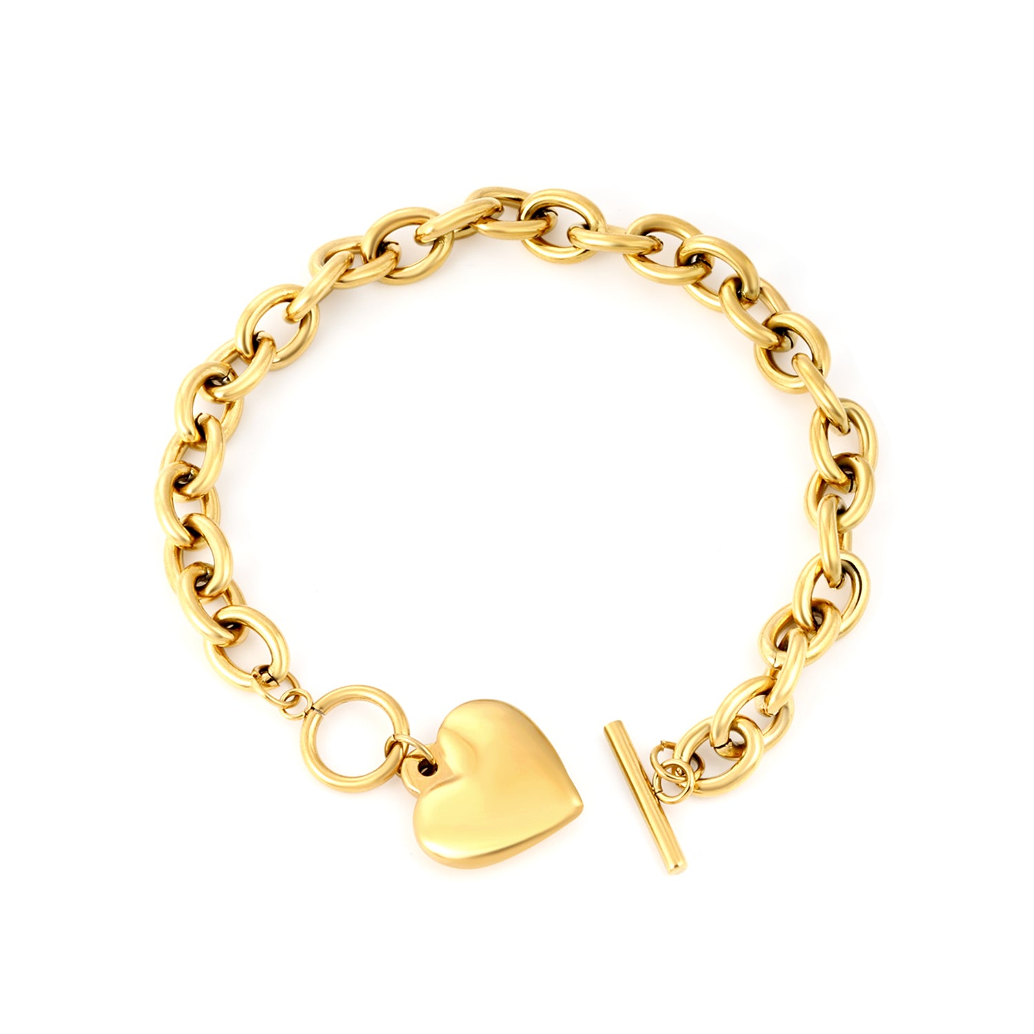 This wholesale 18K gold plated rope chain bracelet features a heart charm set within an industrial weave design, blending vintage luxury with artistic craftsmanship. Its unique texture and classic appeal make it a versatile piece that supports customers seeking timeless elegance with a modern twist.