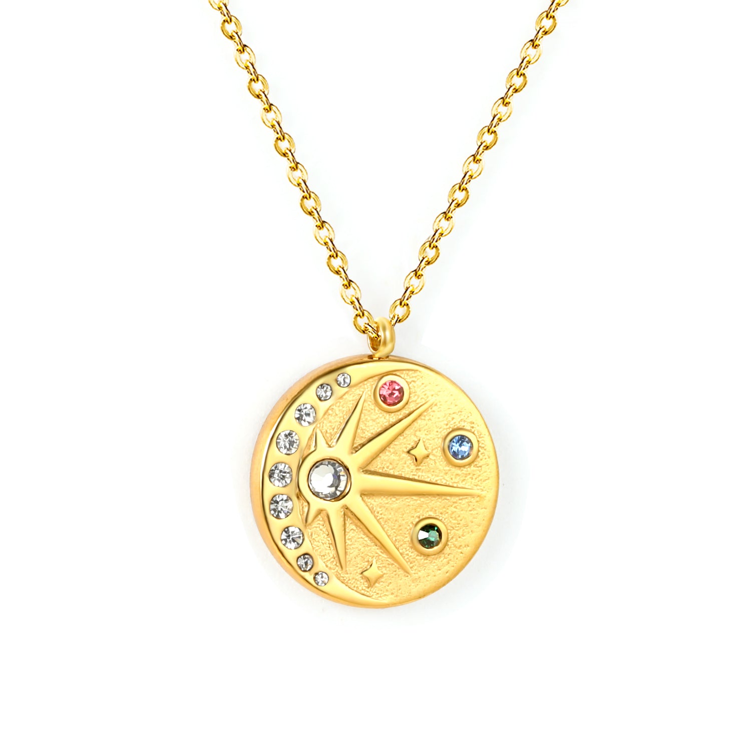 Wholesale 18K Gold Plated Sunburst Multi-Gemstone Necklace Colorful Diamonds Festival Luxury