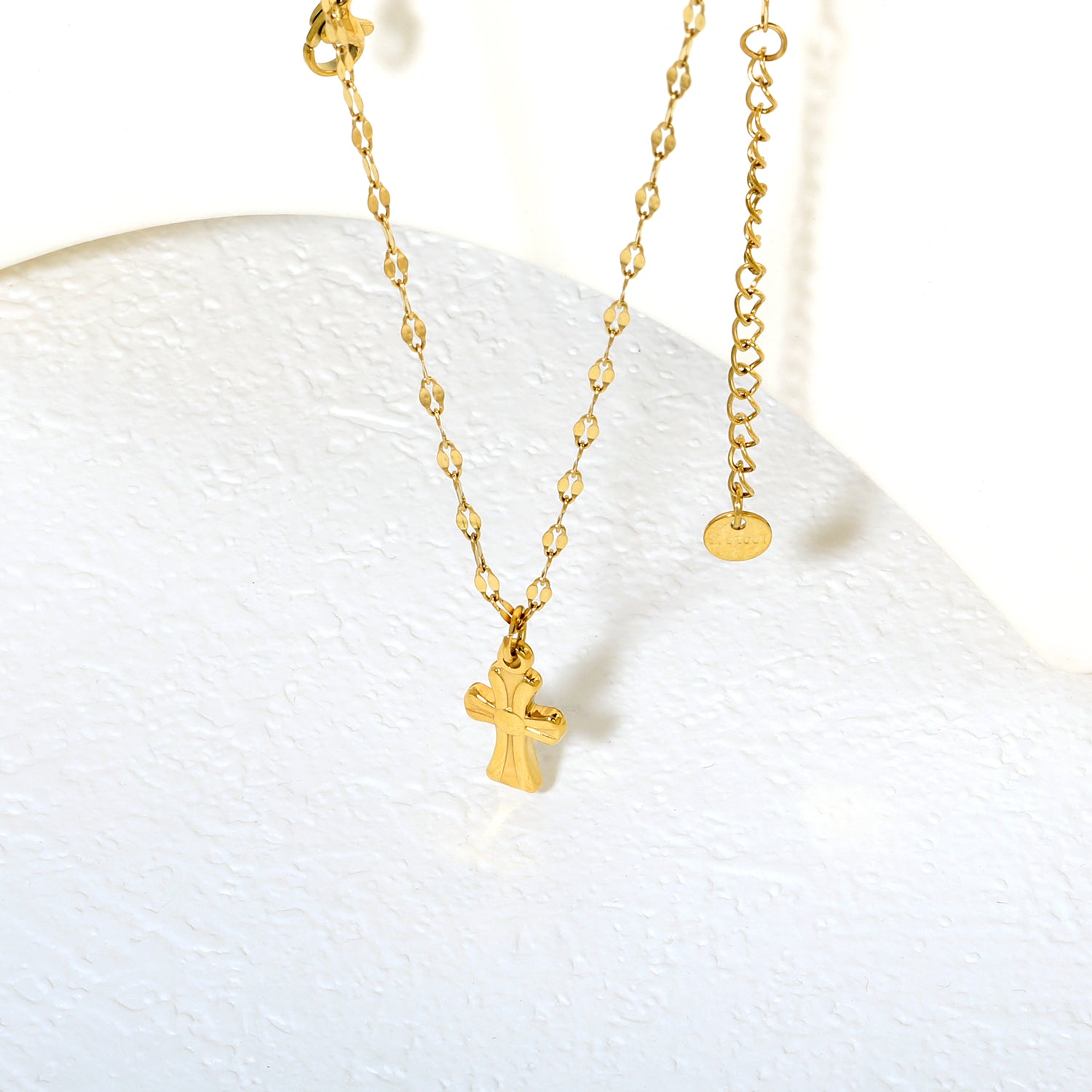 This 18K gold plated vintage cross pendant necklace features a textured surface that reflects its industrial heritage with timeless charm. Its classic design offers both meaningful style and durable wear, making it an ideal accessory for everyday use or special occasions. Perfect for wholesale buyers seeking jewelry with character and lasting appeal.