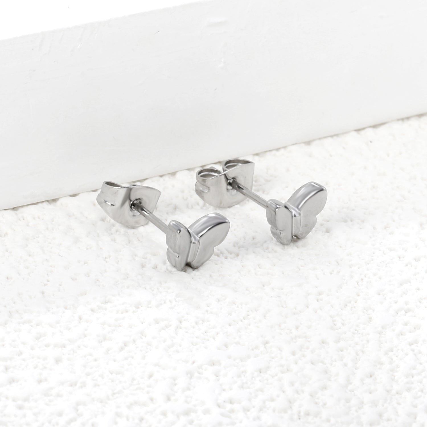 These butterfly-shaped earrings feature durable stainless steel with a lustrous 18K gold plating. Designed as regular pin earrings, they offer a comfortable fit and a delicate, charming look that brightens any outfit, making them perfect for everyday wear or special moments.