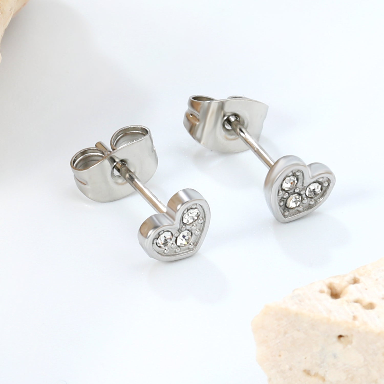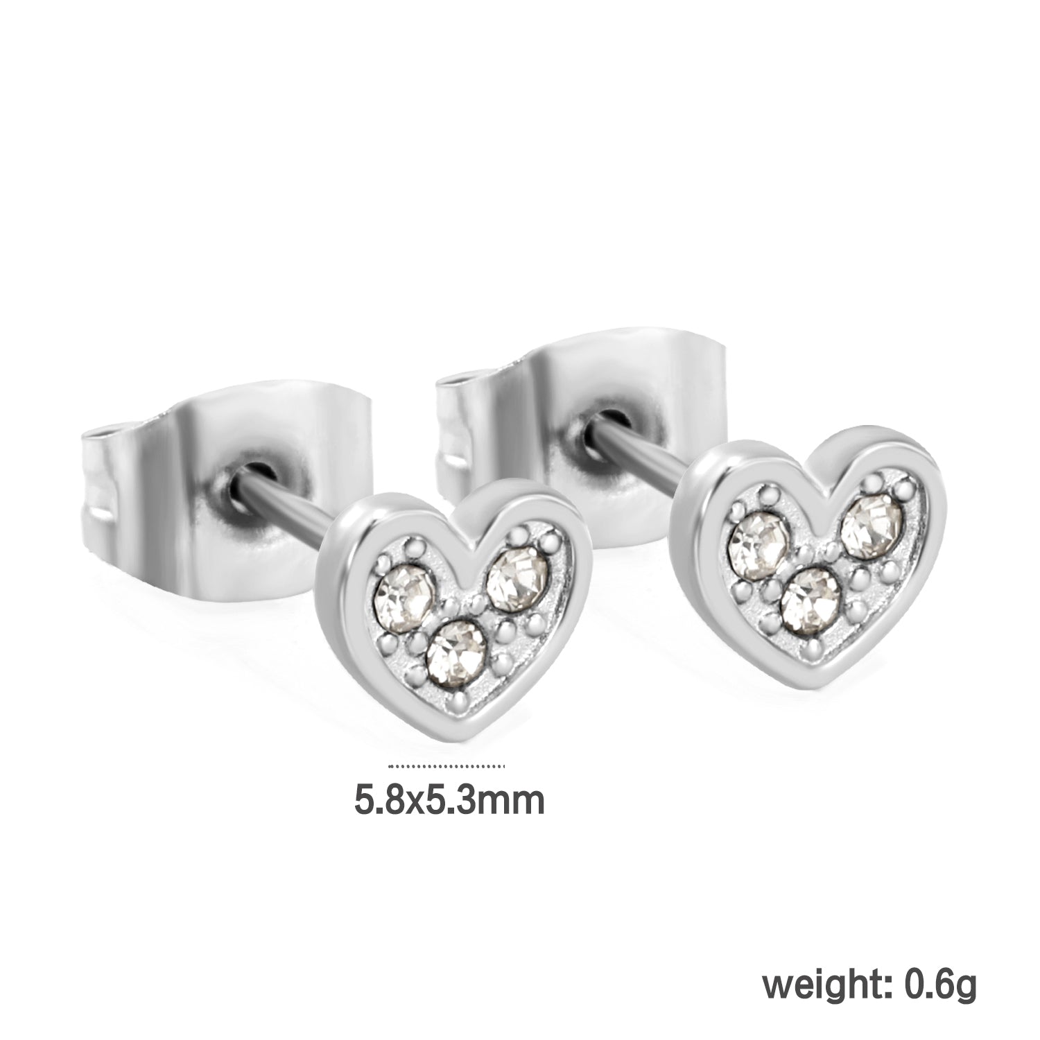 These heart-shaped stick earrings combine durable stainless steel with elegant 18K gold plating and sparkling white diamonds. Designed as ordinary pin earrings, they offer a secure fit and timeless style, perfect for adding a subtle yet charming accent to your everyday or special occasion outfits.