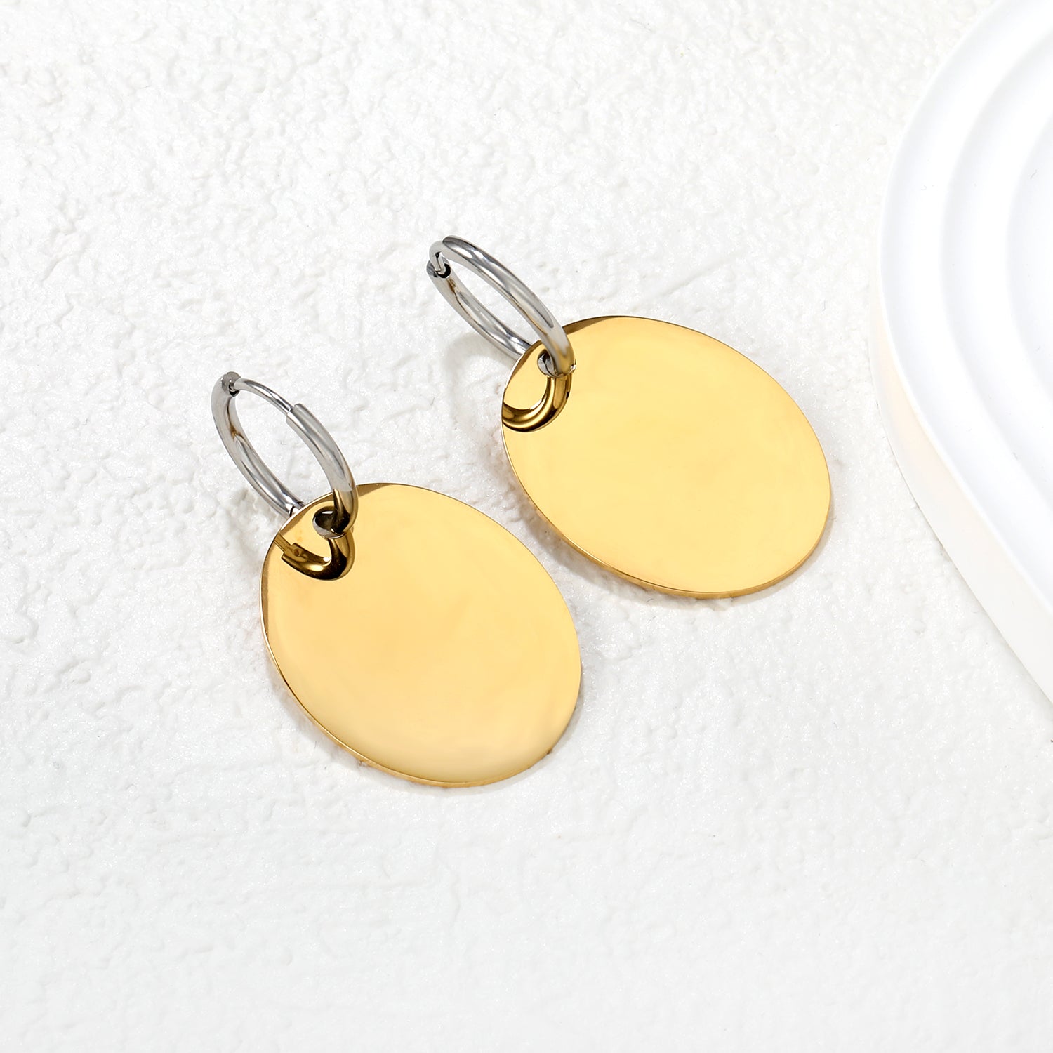 Elevate your style with these Wholesale Two-Tone Hoop Earrings featuring a sleek gold disc. The contrasting design blends minimalist elegance with luxury, making them perfect for both everyday wear and special occasions. Crafted for comfort and lasting shine, these earrings add a subtle yet sophisticated touch to any outfit.