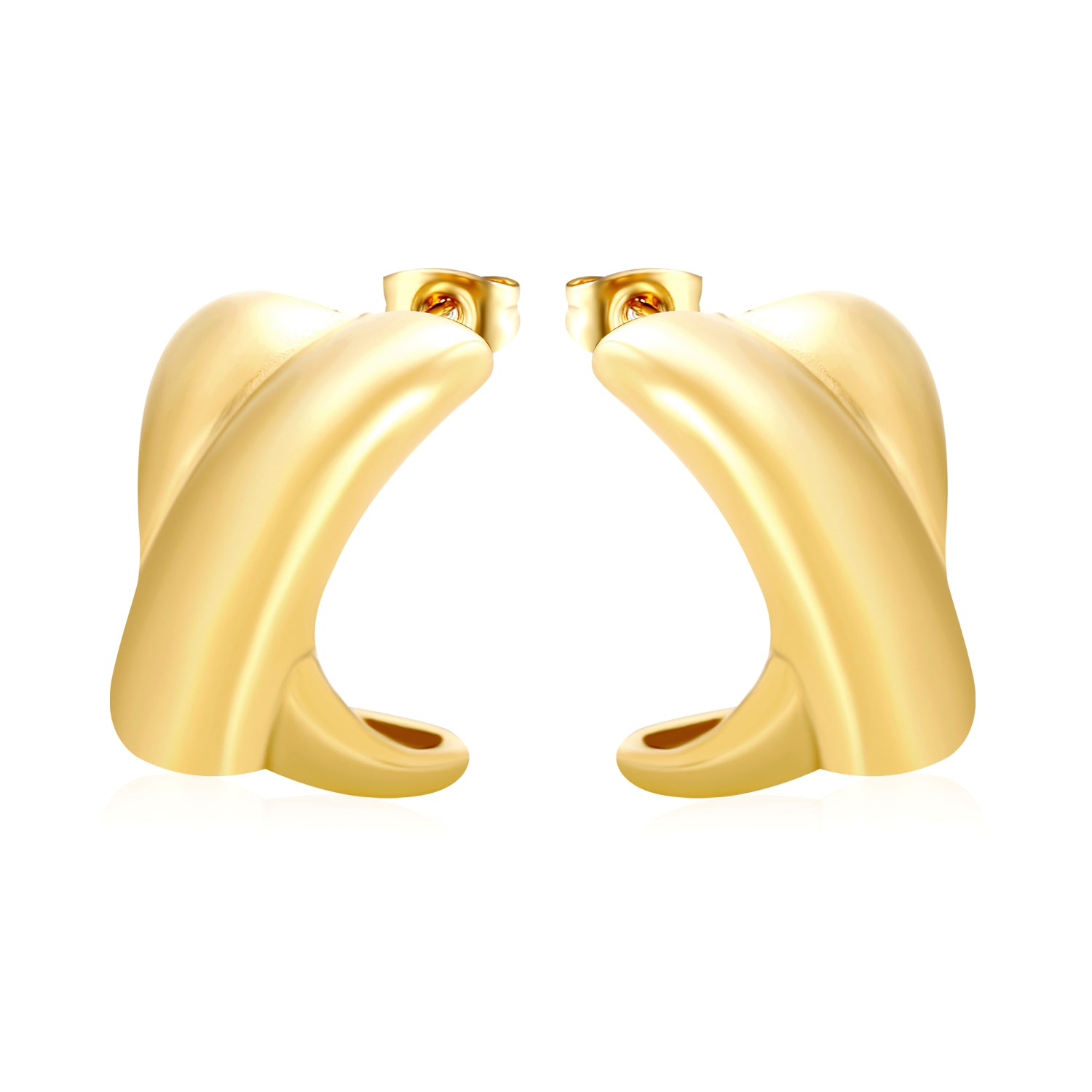 Wholesale Waterproof 18K PVD Two-Tone Smooth C Hoop Earrings