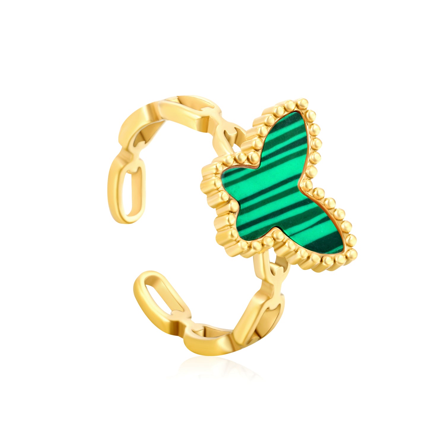 Wholesale Waterproof PVD Gold Butterfly Open Ring (Malachite/Shell/Acrylic)
