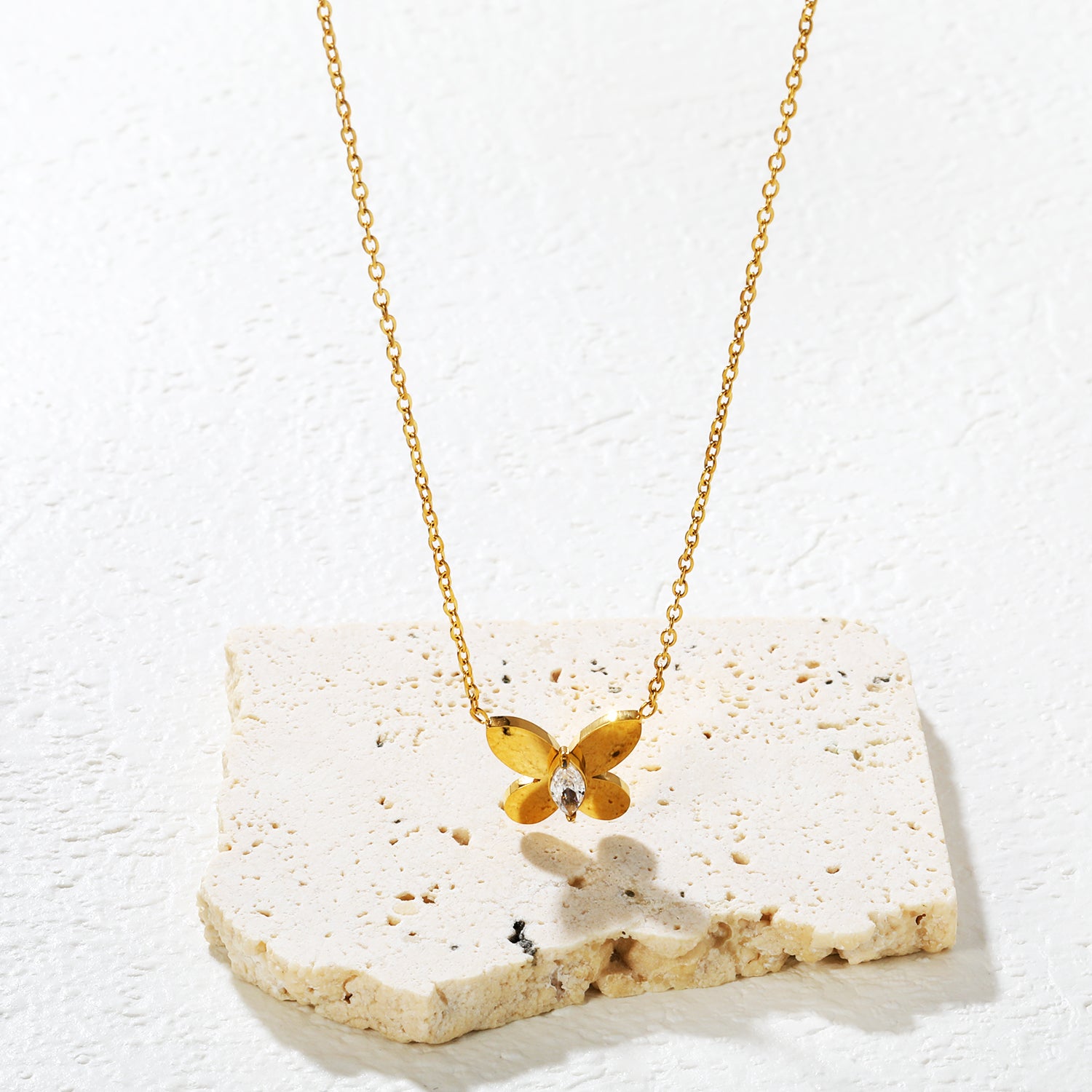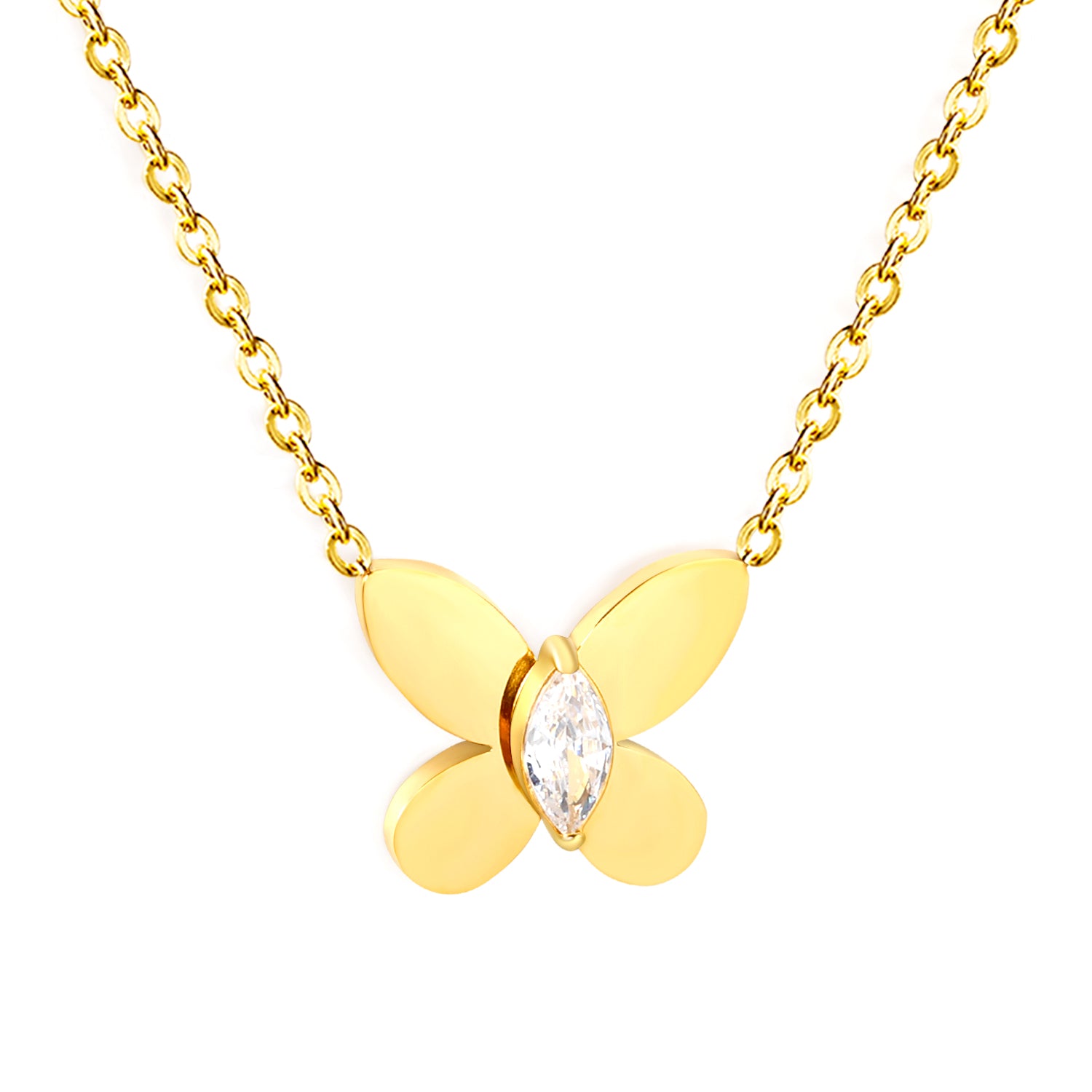 Wholesale Waterproof PVD Gold Plated 3D Butterfly Necklace CZ Stone
