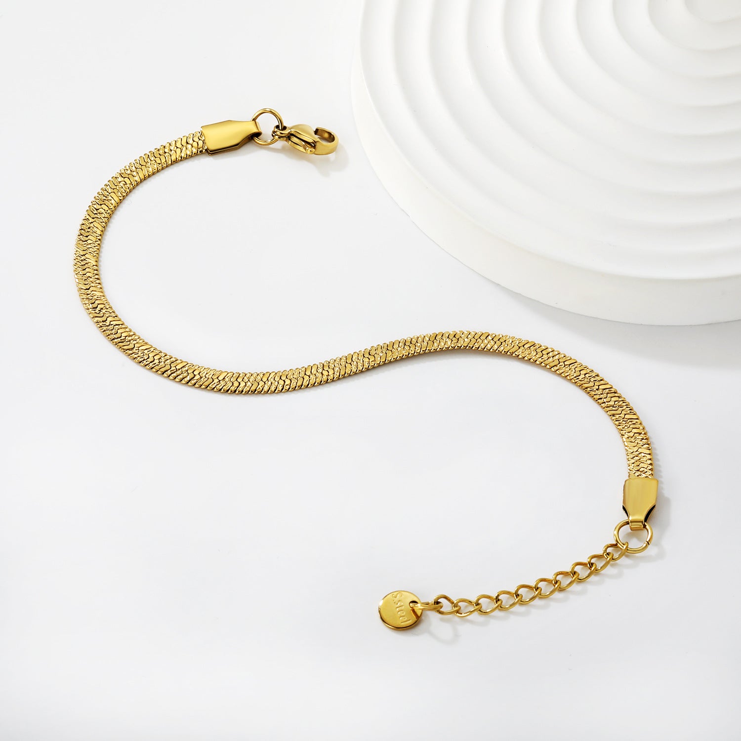 Premium snake chain bracelet featuring densely packed relief-textured links in waterproof PVD gold plating. The substantial construction delivers substantial weight and presence while maintaining comfortable wearability through precision engineering. Relief texturing creates tactile depth and visual richness, distinguishing this piece from standard chain designs. Waterproof technology ensures reliable performance through moisture exposure and frequent wear scenarios. The dense link composition appeals to customers seeking substantial, investment-grade jewelry with authentic craftsmanship. Wholesale partners benefit from durable PVD finish and timeless chain aesthetics that drive consistent retail demand while maintaining superior quality standards across bulk orders.
