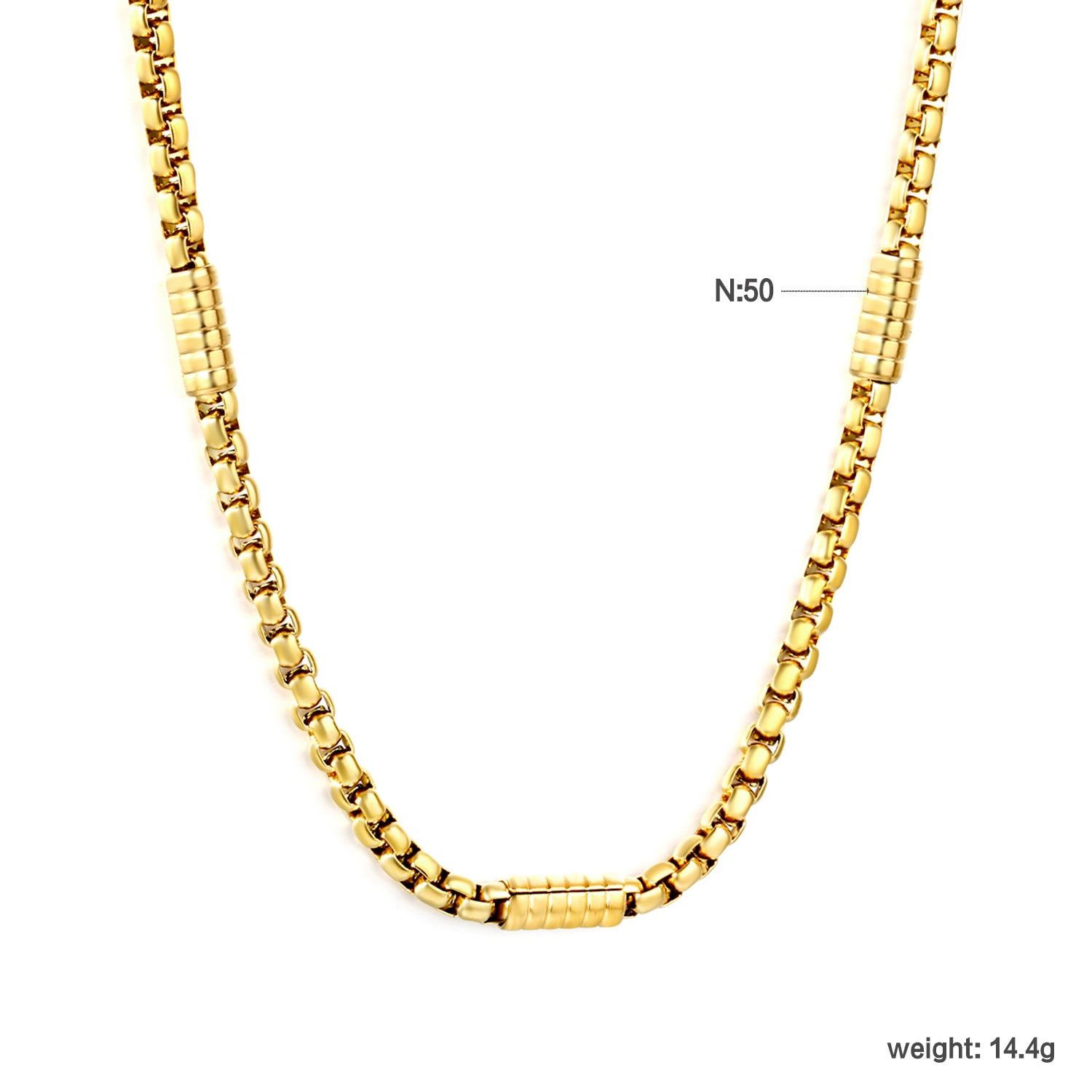 This architectural square column spliced link chain showcases bold geometric design with waterproof PVD gold plating engineered for wholesale durability and performance. The distinctive spliced construction creates visual interest while maintaining structural integrity, appealing to retailers seeking statement pieces with contemporary appeal. PVD coating provides superior resistance to water, moisture, and oxidation—critical for consistent quality across bulk shipments and diverse market conditions. An innovative chain option that differentiates your inventory while delivering the reliability and longevity wholesale buyers demand.