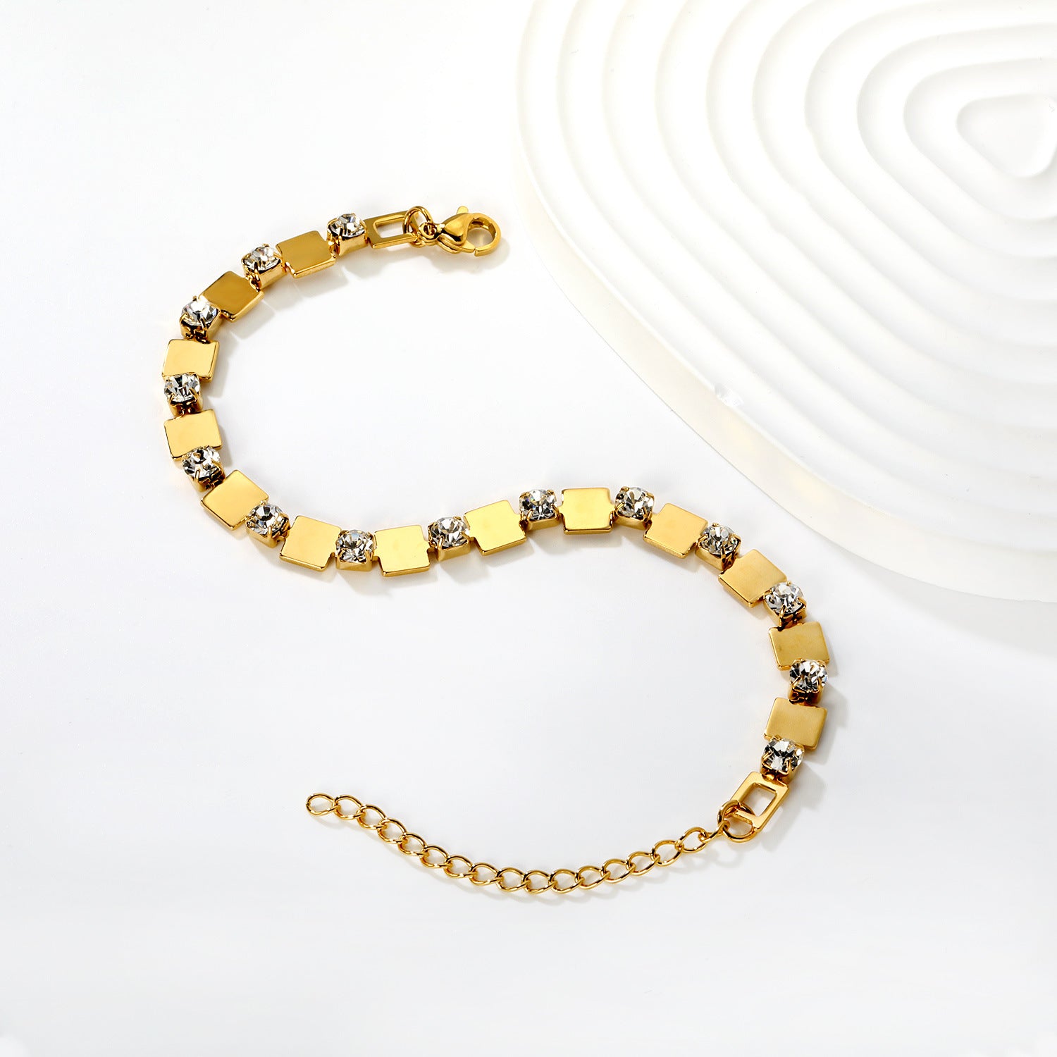 Wholesale Waterproof PVD Gold Square CZ Geometric Spaced Bracelet