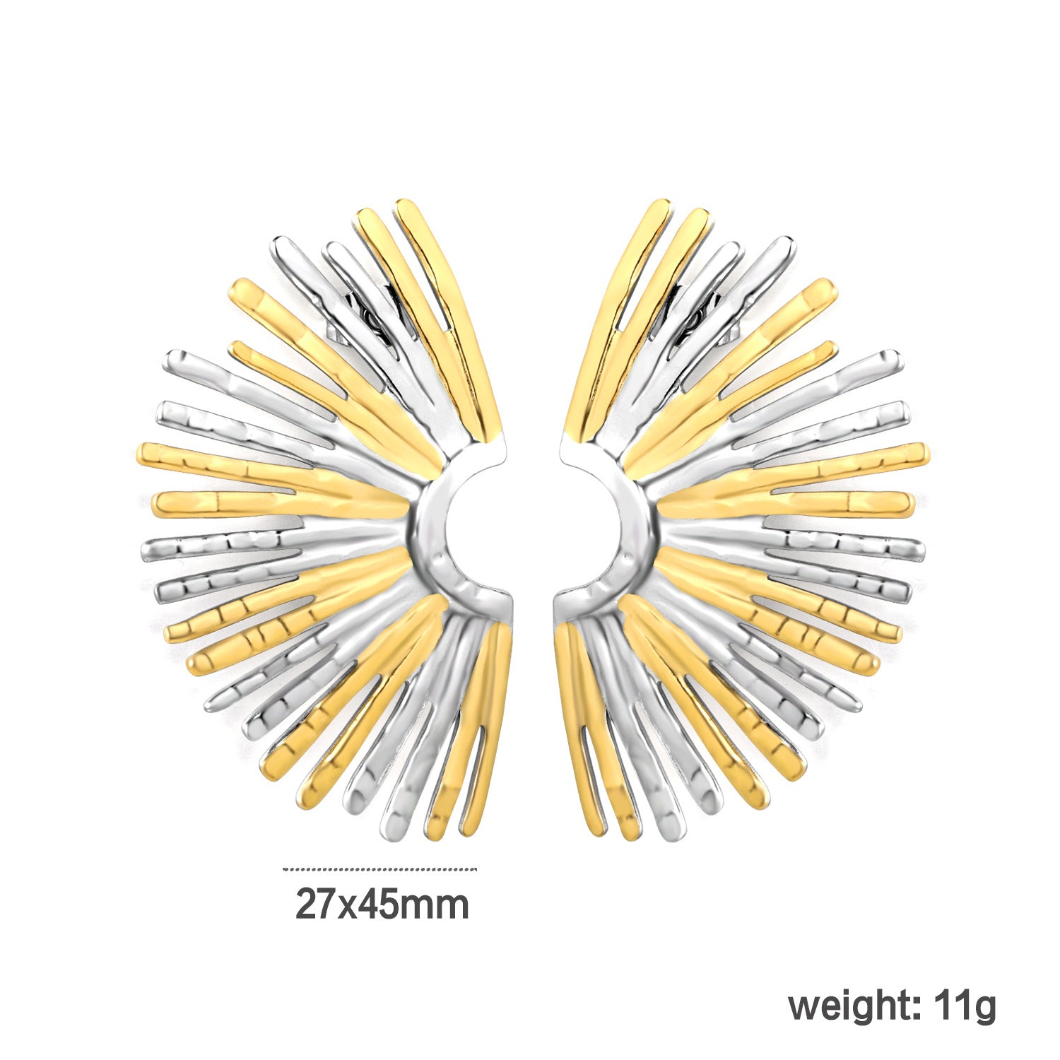 These innovative ear clips offer elegant jewelry solutions for those preferring non-pierced styling. The sculpted radial wing design showcases dimensional artistry in a sophisticated two-tone finish that adapts to various skin tones and personal aesthetics. Waterproof construction ensures reliability through diverse environments and activities without compromising appearance or comfort. The secure clip mechanism provides confident all-day wear without slipping or shifting. Ideal for wholesale distribution, these pieces address an underserved market segment seeking quality jewelry alternatives. Perfect for retailers expanding their offerings to include inclusive, accessible options that don't sacrifice style or durability.